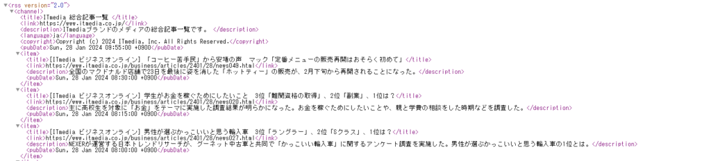 - 日付: <pubDate>